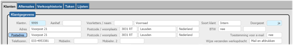 Het klantenbestand vormt de basis voor de facturatie. Hier wordt o.a. vastgelegd wat voor soort klant het is (intern of extern) en hoe de verschillende documenten voor deze klant verwerkt moeten worden.